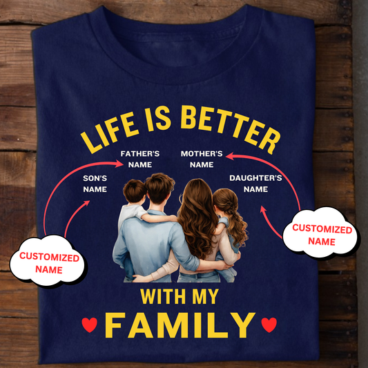CUSTOMIZED-LIFE IS BETTER WITH MY FAMILY (KIDS) CLASSIC T-SHIRT