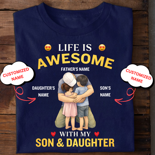 CUSTOMIZED-LIFE IS AWESOME WITH MY SON & DAUGHTER (FATHER & KIDS) CLASSIC T-SHIRT