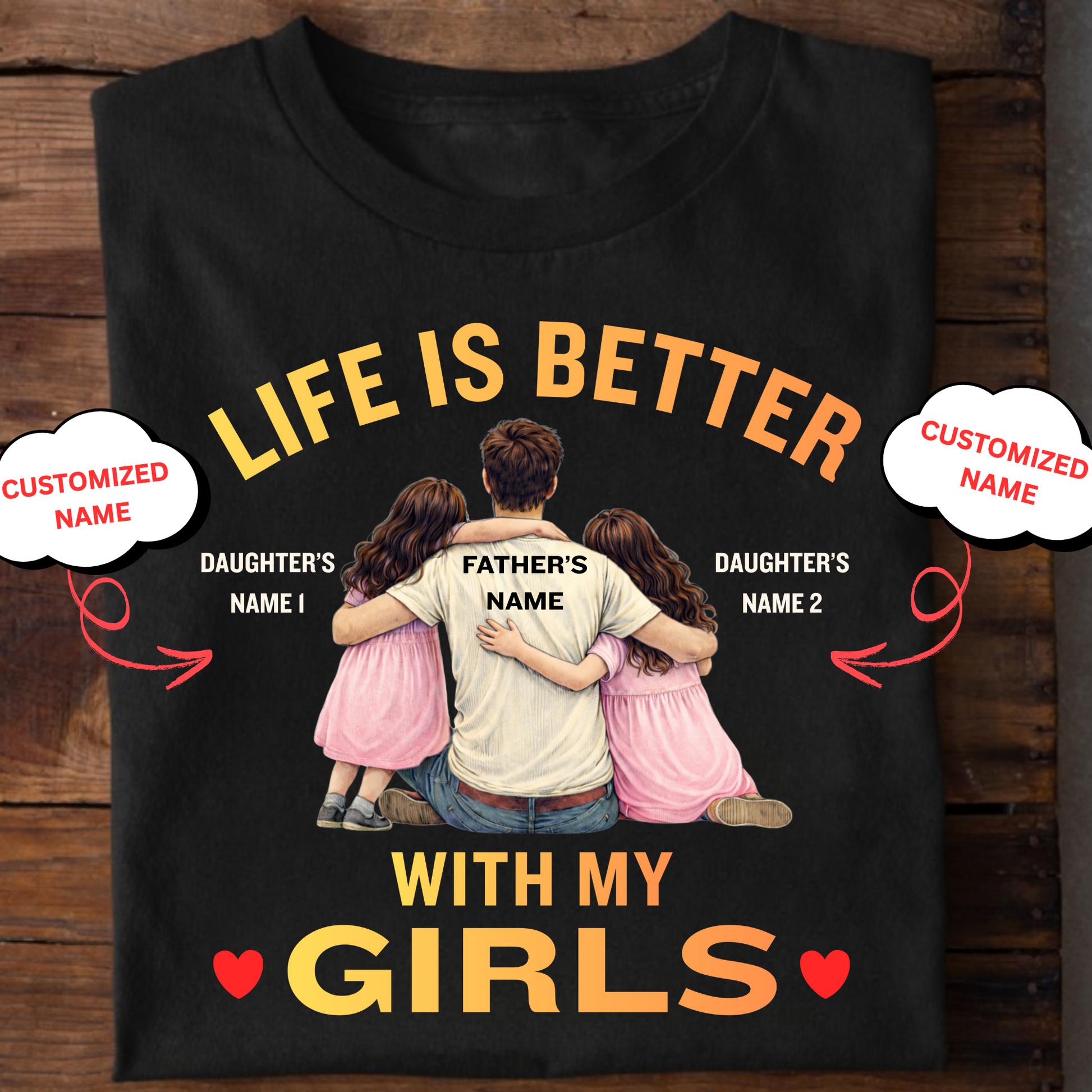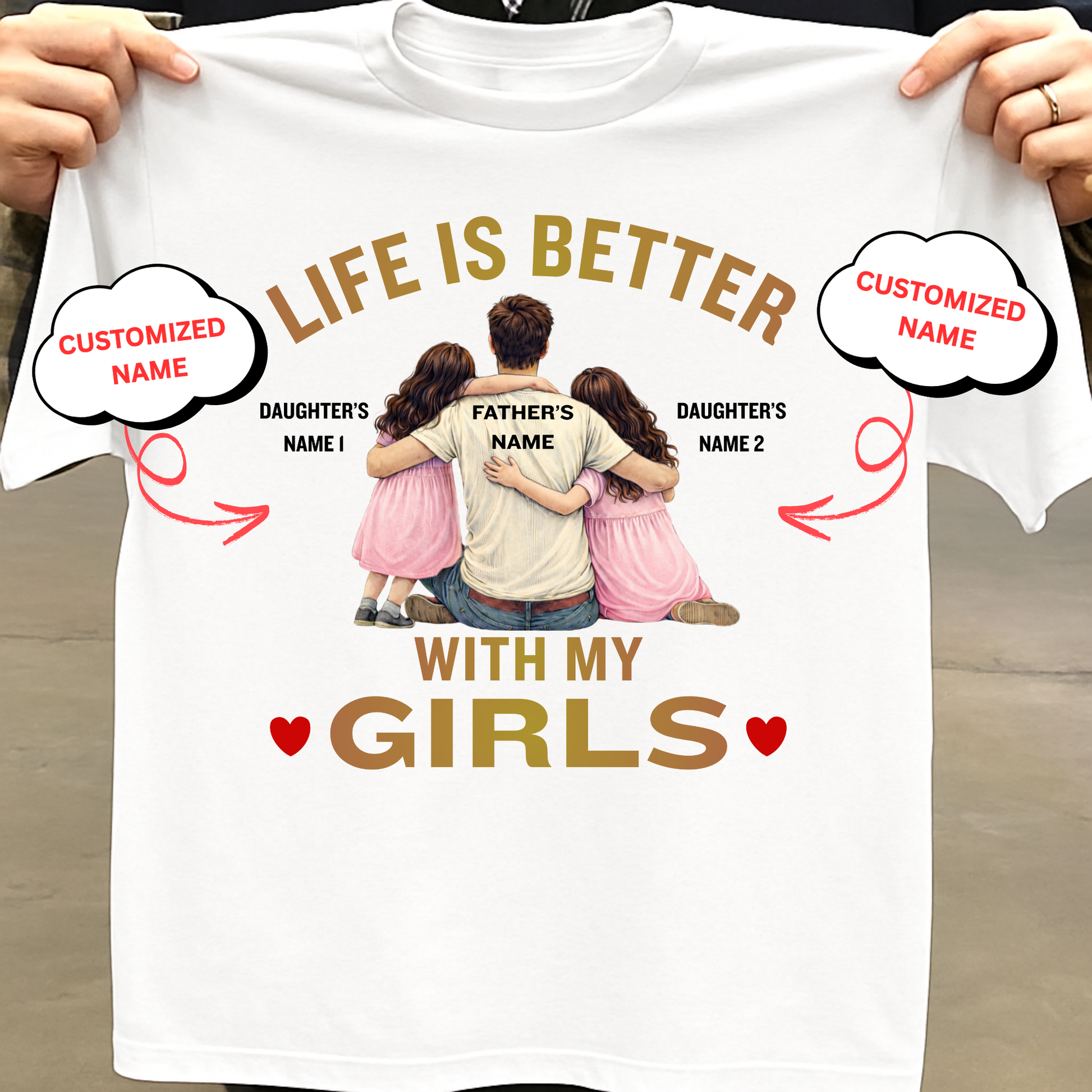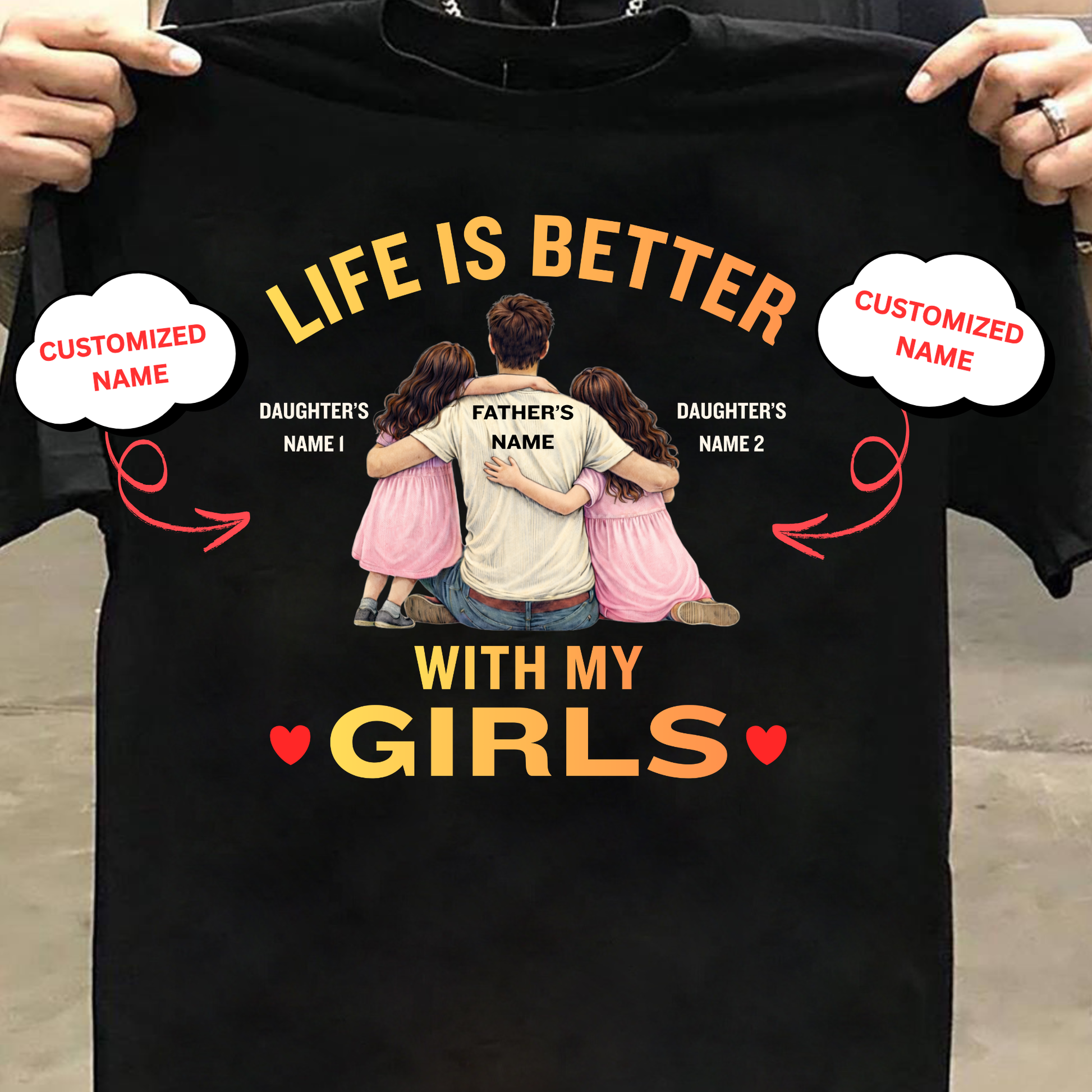 CUSTOMIZED-LIFE IS BETTER WITH MY GIRLS (FATHER & DAUGHTERS) CLASSIC T-SHIRT