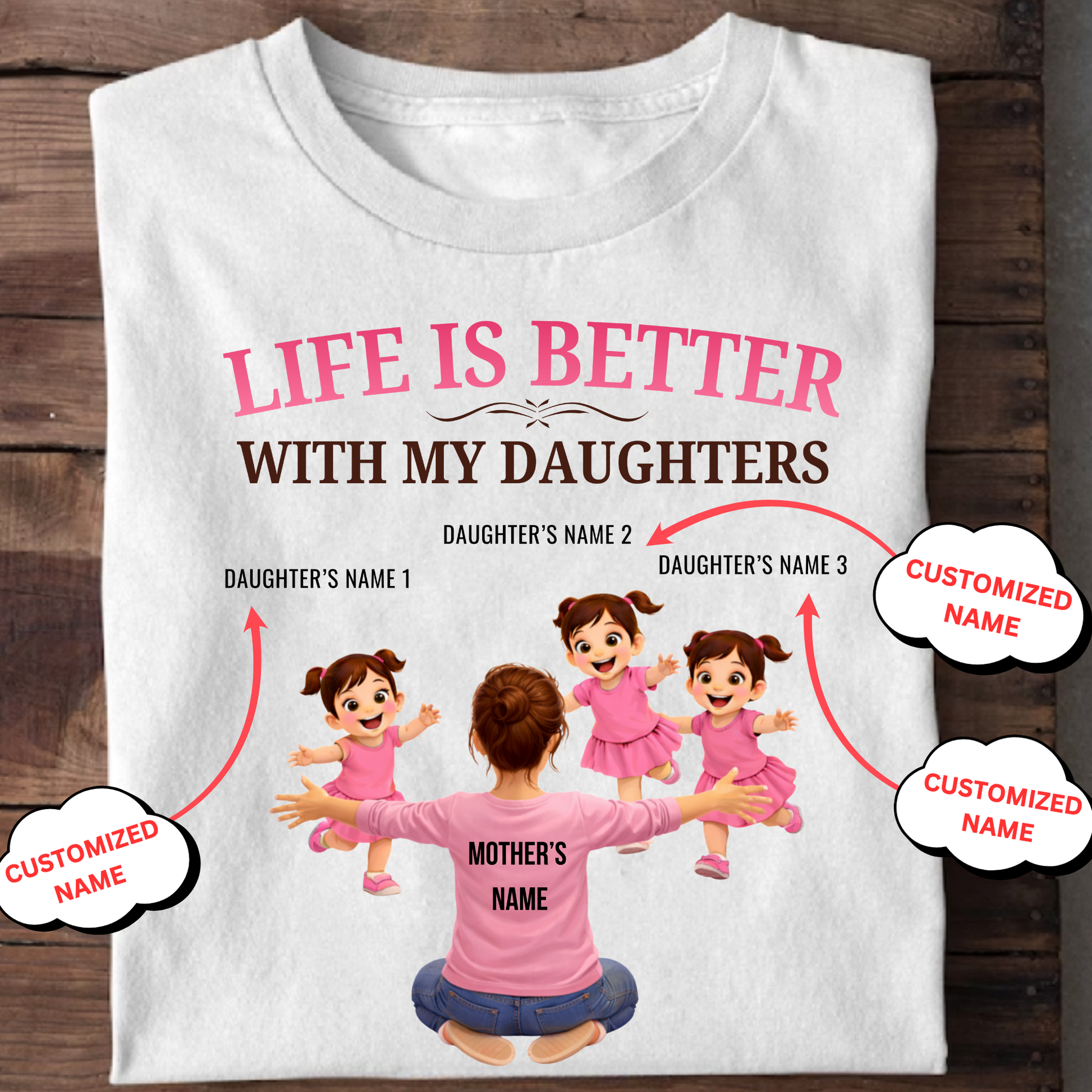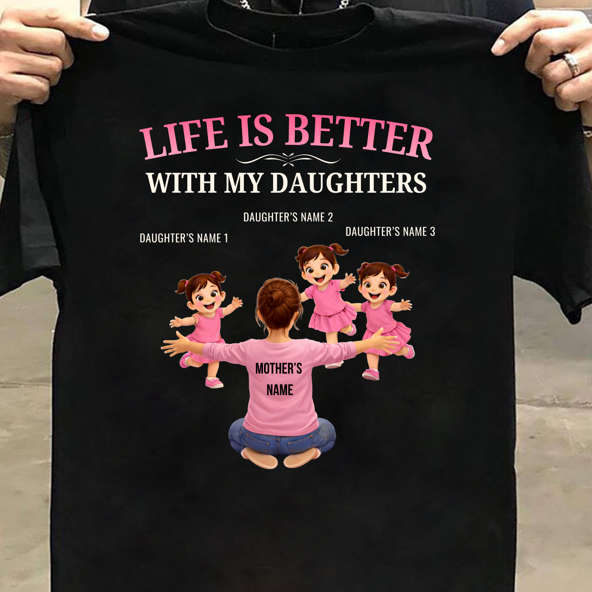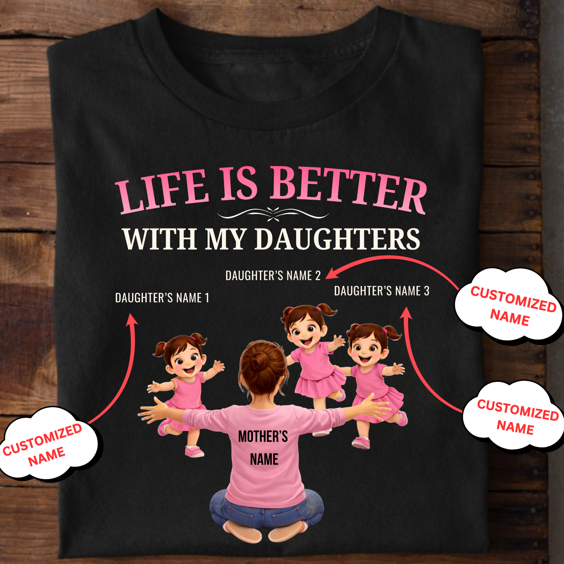 CUSTOMIZED-LIFE IS BETTER WITH MY THREE DAUGHTERS (MOTHER & DAUGHTERS) CLASSIC T-SHIRT